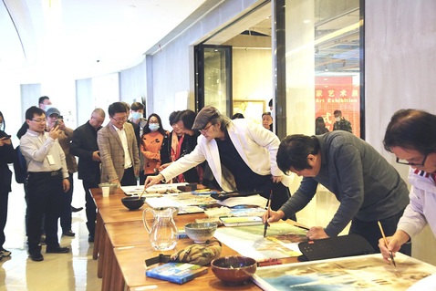 艺术家代表在开幕式现场共同绘制一带一路组图。开幕式现场还由上海人民广播电台支持安排了《看进博——一带一路国家艺术漫谈》沙龙活动,由蔡亚鸣领衔畅谈艺术创作人生与感悟。