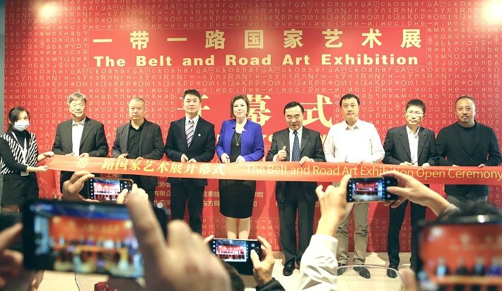 11月11日,由我校与上海市人民对外友好协会、中共一大会址纪念馆、东方网联合举办的“迎接建党百年”一带一路国家艺术展在上海绿地全球商品贸易港隆重开幕。