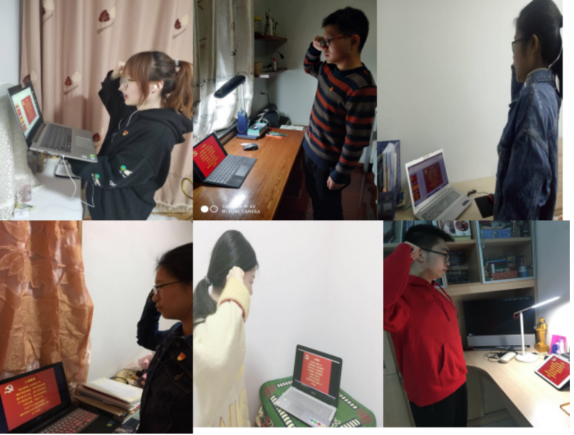 主题党日活动在国歌声中拉开了序幕,支部全体党员相隔屏幕肃立齐唱《国歌》,用歌声表达对国家的热爱,对党的忠诚。随后,支部全体党员集中观看了《青春闪亮最前线——走近ICU病房里的“90后”医护人员》和《让青春在党和人民最需要的地方绽放绚丽之花——习近平总书记给北京大学援鄂医疗队全体“90后”党员的回信激励广大青年担当尽责、努力奋斗》两个视频资料,支部党员围绕本次党日活动主题,结合疫情发生以来自己的所感所悟,一起话初心,谈体会。学生党员纷纷表示,被战“疫”一线的90后医护人员的担当尽责所深深感动,自身作为90后党员,要向榜样学习,与榜样同行,在非常时期凸显共产党员的担当作为。