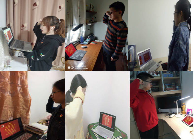 学生一支部围绕“新冠肺炎抗疫防疫工作中,党员们是如何做到将初心与日常联结,将党员的责任、担当、使命赋予到行动中去”进行了交流发言。学生二支部在奏唱国歌中开启主题党日活动,集中观看了《青春闪亮最前线——走近ICU病房里的“90后”医护人员》和《让青春在党和人民最需要的地方绽放绚丽之花——习近平总书记给北京大学援鄂医疗队全体“90后”党员的回信激励广大青年担当尽责、努力奋斗》两个视频资料,支部党员结合疫情发生以来自己的所感所悟,一起话初心,谈体会。最后,支部全体党员一起重温了入党誓词,再次接受心灵深处的洗礼,在誓词中表达对党的忠诚和热爱之情;学生三支部对特殊时期最美的“逆行者”们表达了由衷的敬意,纷纷表示以自己的实际行动切实发挥新时代党员的先锋模范作用,践行初心使命;学生四支部集中学习习近平总书记在疫情防控期间的系列讲话精神,纷纷对假期期间学习工作进行了交流,大家一致表示会带头做好疫情防控工作。