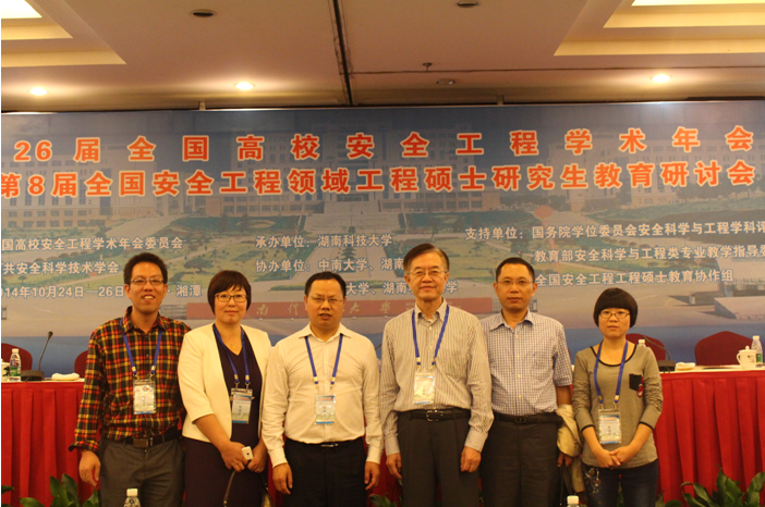 10月25日-26日,我校城建学院副院长程道来教授、彭亚萍教授、仇圣华教授、张小良副教授、赵道亮副教授参加了在湖南科技大学召开的第26届全国高校安全工程专业学术年会暨第8届安全工程领域硕士研究生教育研讨会。来自全国70余所高校及相关科研院所的280余位专家、学者主要围绕安全科学与工程学科的建设、发展与硕士研究生高层次人才培养进行深入探讨。中国工程院院士、清华大学公共安全研究中心主任、博士生导师范维澄教授做了题为“公共安全科技发展”的主题报告,从提高公共安全科技的必要性、公共安全涉及的范围、我国与西方国家技术水平的对比等方面全面论述了我国公共安全科技的发展,范院士还就国家安全工程“十三五”科技发展规划的相关研究与在场学者进行了交流。