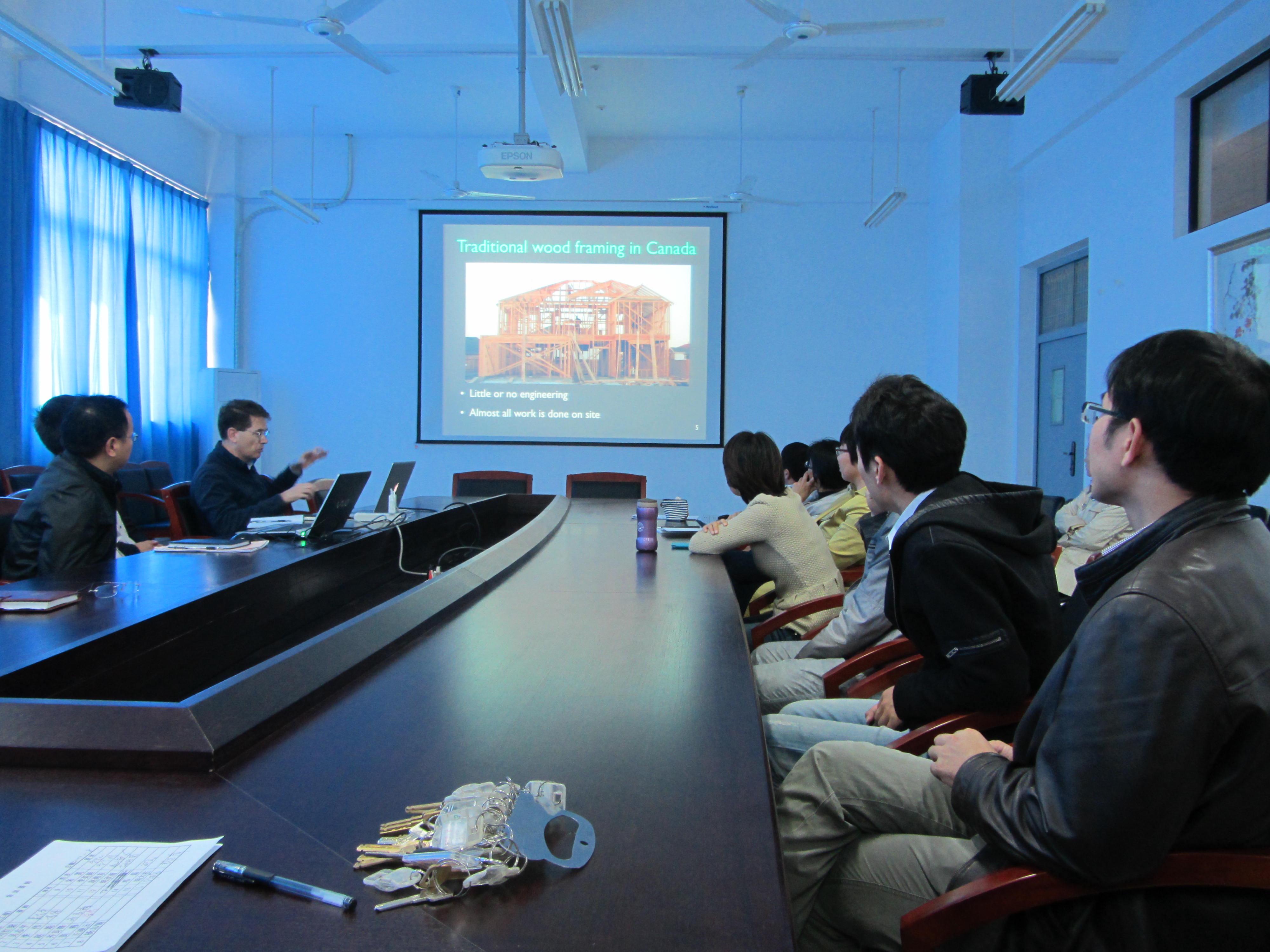 针对土木结构的研究进展,高教授主要就加拿大丰富的森林资源、木材的优缺点、螺钉新型木节点及混凝土-木材组合结构技术等方面进行了介绍;针对拱桥,以葡萄牙的Infante Henrique桥入手,结合55座世界著名混凝土拱桥数据,对其受力行为与跨高比等几何特性的关系进行了深入浅出的讲解。讲座结束后,高教授就大家所提问题展开了深入而广泛的研讨,使全体与会师生受益良多。
