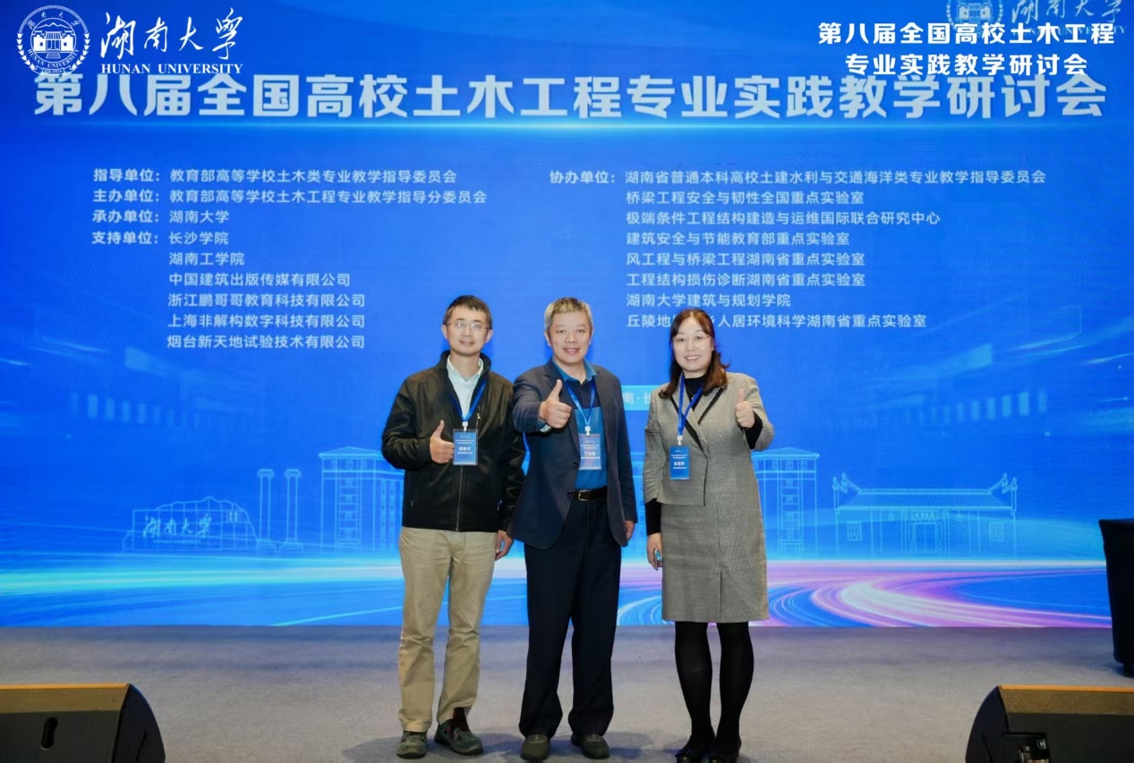 2025年11月7-9日,由教育部高等学校土木工程专业教学指导分委员会主办,湖南大学承办的第八届全国高校土木工程专业实践教学研讨会在长沙召开。来自全国135家单位的350余位与会者齐聚一堂,共商人工智能时代我国土木工程专业实践教学的转型与升级。我校城市建设与生态技术学部党委书记丁文胜教授、副院长彭亚萍教授、土木系主任葛继平副教授参加会议。