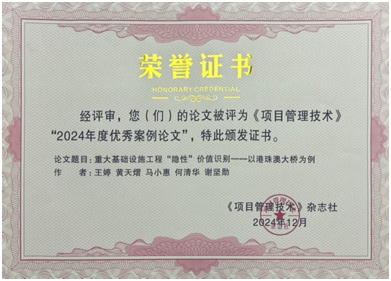 同时,由王婷老师指导,研究生黄天熠及本科生马小惠同学参与的期刊论文:重大基础设施工程“隐性”价值识别-以港珠澳大桥为例,喜获2024年度优秀案例论文。这也是工程管理专业长期坚持学术前沿与工程实践相结合又一喜人成果。另外,近三年来,王婷老师已先后指导5位高年级本科生发表了学术期刊论文(1篇SCIE,2篇中国科技核心,1篇中国知网检索,1篇SCOPUS检索国际会议论文),从一定程度展现工程管理专业育人成果。