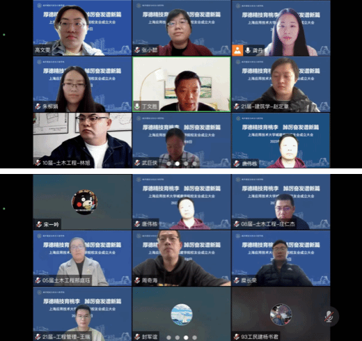 随后,选举产生的城建学院校友会第一届理事会在线召开了第一次会议。经大会选举,学院党委副书记、院长丁文胜当选会长,学院党委书记朱柳娟当选常务会长,上海钢之杰钢结构建筑系统有限公司董事长许金勇、松江经济技术开发区管理委员会社会事业部副部长(主持工作)林旭、上海景观实业发展有限公司董事长周奇海当选副会长,学院党委副书记、副院长张小懿当选秘书长。会议还审议通过了副秘书长、常务秘书等人选。