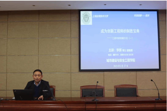 为深入贯彻落实党的二十大精神,2月27日,城建学院在学校奉贤校区图书馆B101会议室举办科研专题讲座。城建学院安全工程专业党员教师李辉副教授作“成为创新工程师的制胜宝典—工程中的创新方法”主题讲座, 200余名学生聆听了本次讲座。