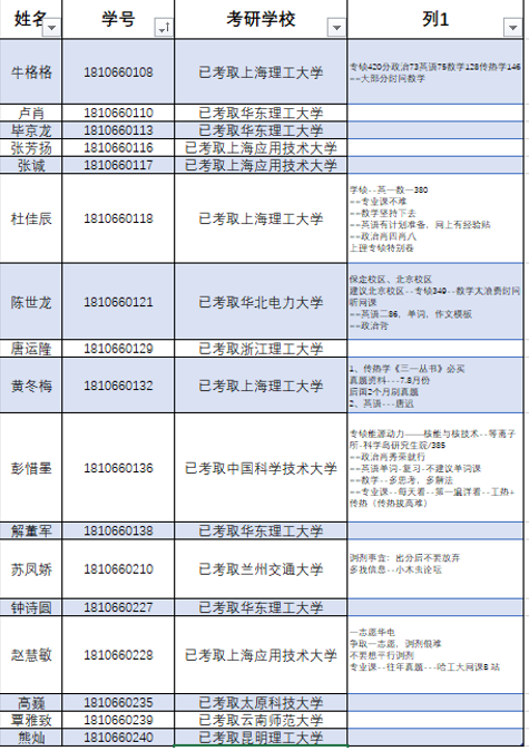 能源与动力工程专业已连续10余年组织举办考研经验交流分享会,从而逐渐形成了以考研为有效抓手,不断推进学院学风建设长效发展,促进学生综合素质的全面提升。据悉,城建学院18级能源与动力工程专业17名同学考研成功考取硕士研究生,创造自07年该专业招生以来考研成功上岸人数最多、质量相对最优的新记录。