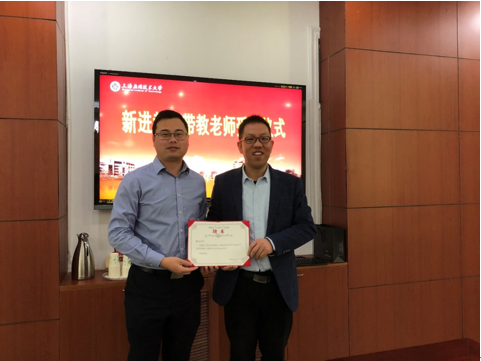 汇报会后,还进行了新进教师首聘协议签约仪式和新进教师带教教师受聘仪式。