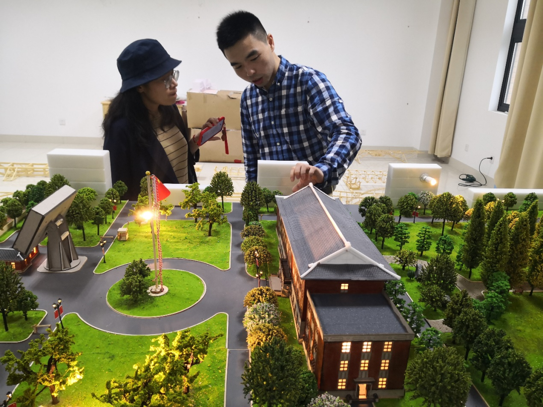 整个模型由城建学院沈睿老师带领团队历时三个月,通过史料查阅、文化溯源、实地勘测、模型绘制、激光切割、3D打印、模型搭建、电路设计与制作、校园景观构建等步骤制作完成。在尊重历史的同时也在不断创新,旨在打造智慧校园红色建筑景观模型。