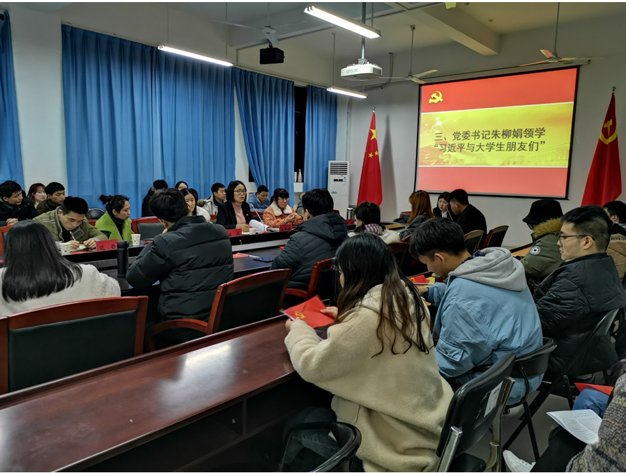 接着,朱柳娟领学了《习近平与大学生朋友们》之《习近平傍晚与我们社会实践团座谈》,她强调要深刻领悟习近平总书记勉励广大青年扎根基层、投身实践的精神实质,鼓励大家在做好疫情防控的同时,更要利用家乡资源,助力家乡建设,发挥专业特长,服务地方建设,让青春在基层飞扬。