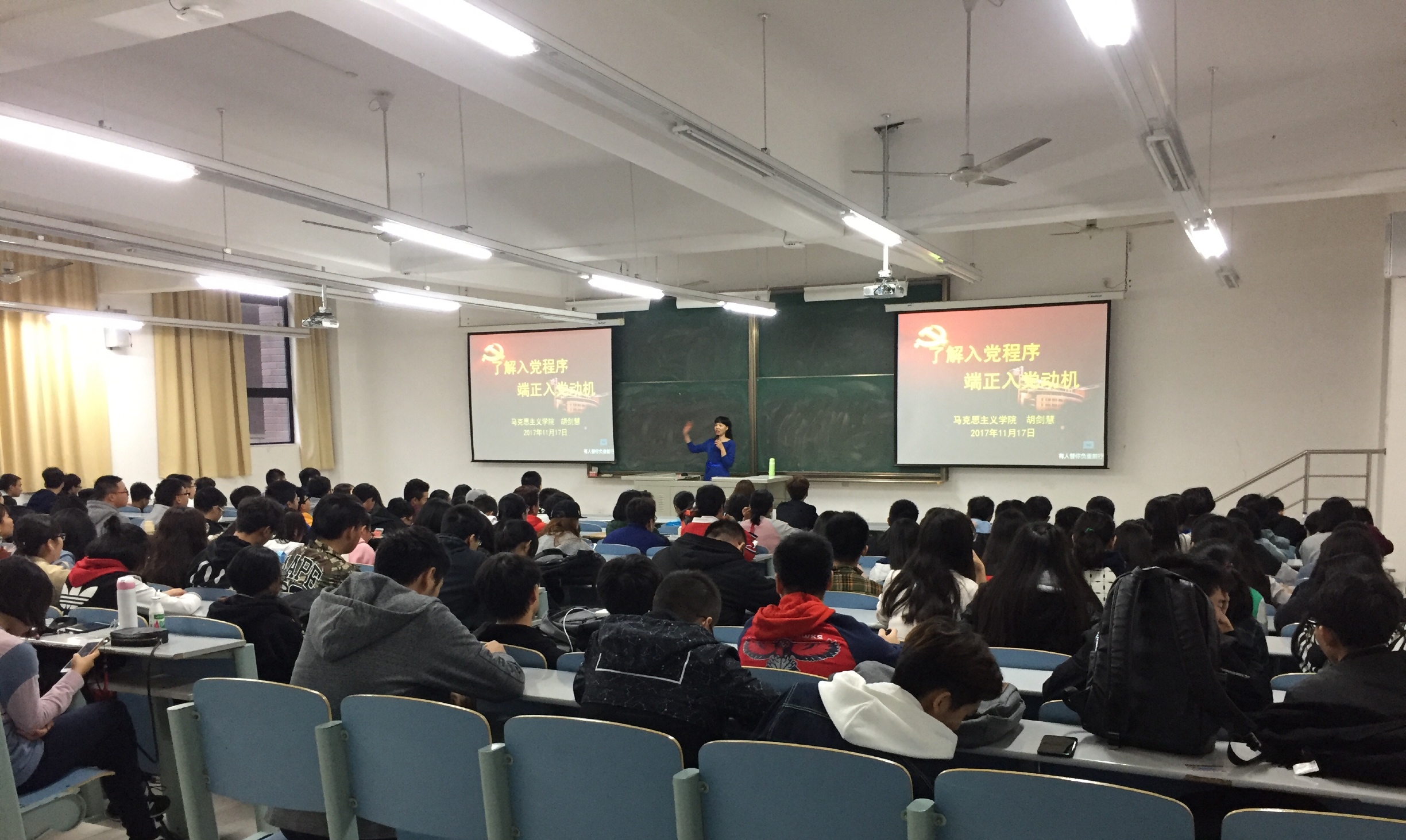 11月10日和11月17日下午13点,城建学院分两场举办了2017级新生党建教育讲座,马克思主义学院胡剑慧副教授应邀作报告,17级全体新生参加。