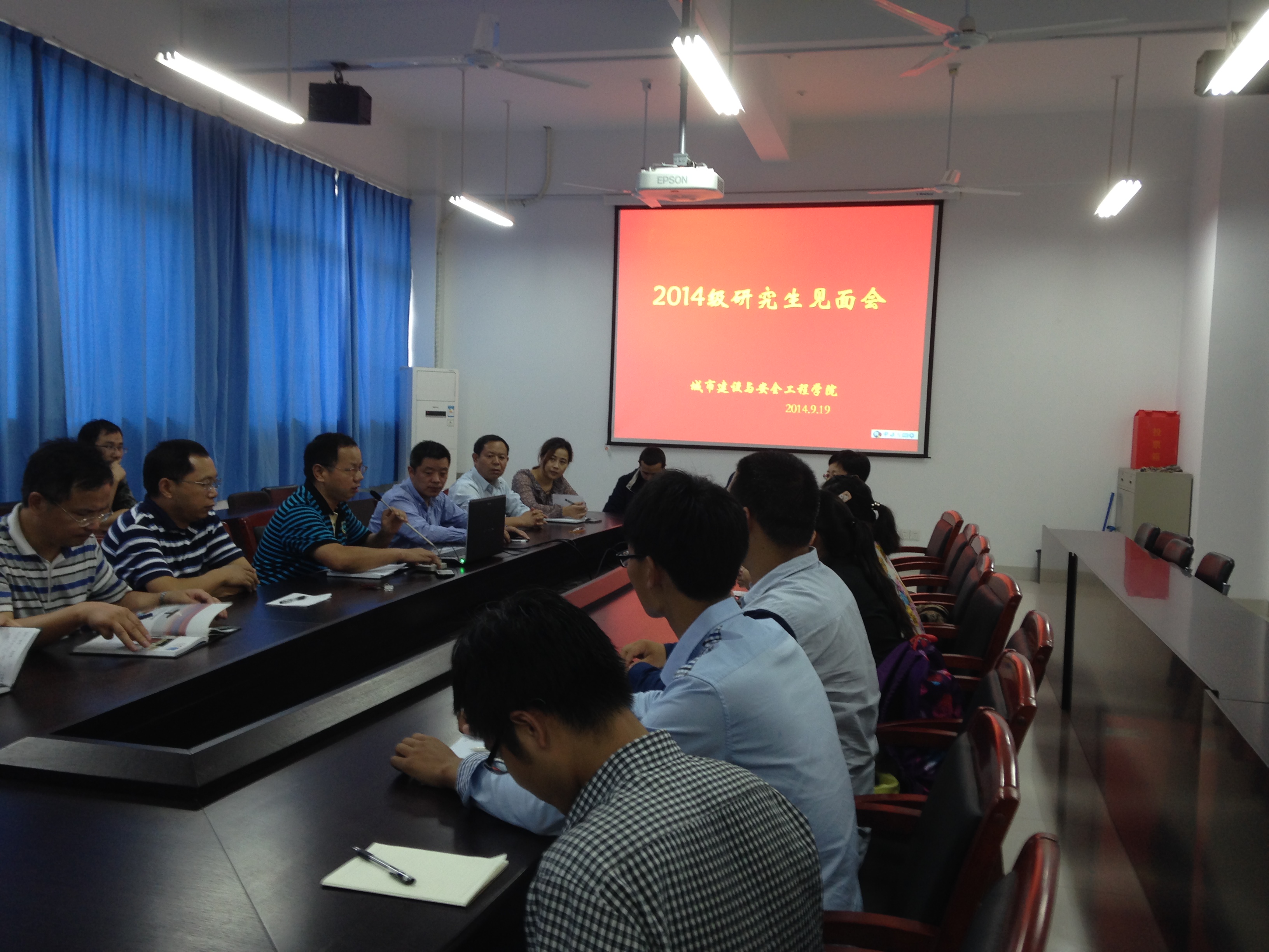 9月19日下午,城建学院2014级研究生与导师见面会在会议室A424举行。科研院长程道来主持会议,院长、城建学院全体硕士生导师和2014级研究生参加见面会。