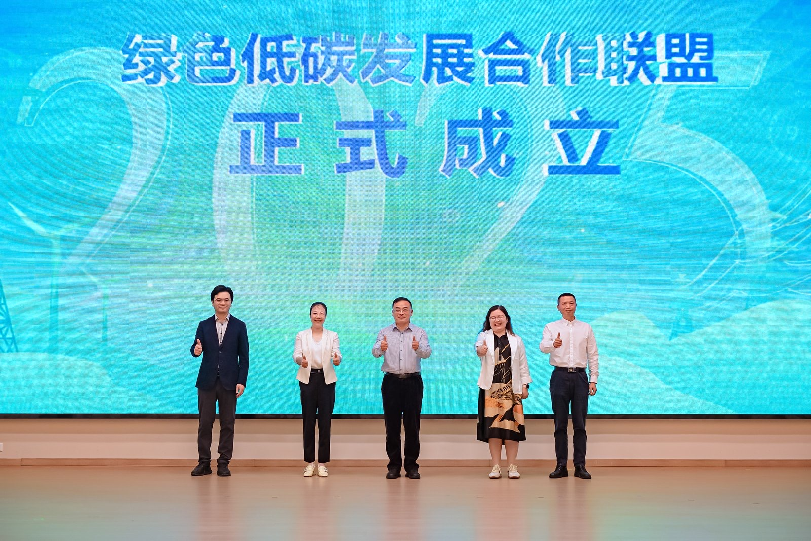 在低碳发展促进大会上,同时成立了奉贤区绿色低碳发展合作联盟,奉贤区工商联党组书记余仲威,上海市经信委产业绿色转型和发展处副处长张敏,奉贤区经委副主任徐晓峰,奉贤区生态环境局副局长郑古兵,上海应用技术大学生态技术与工程学院党委副书记、副院长任玉英,共同为绿色低碳发展合作联盟成立按下手印。