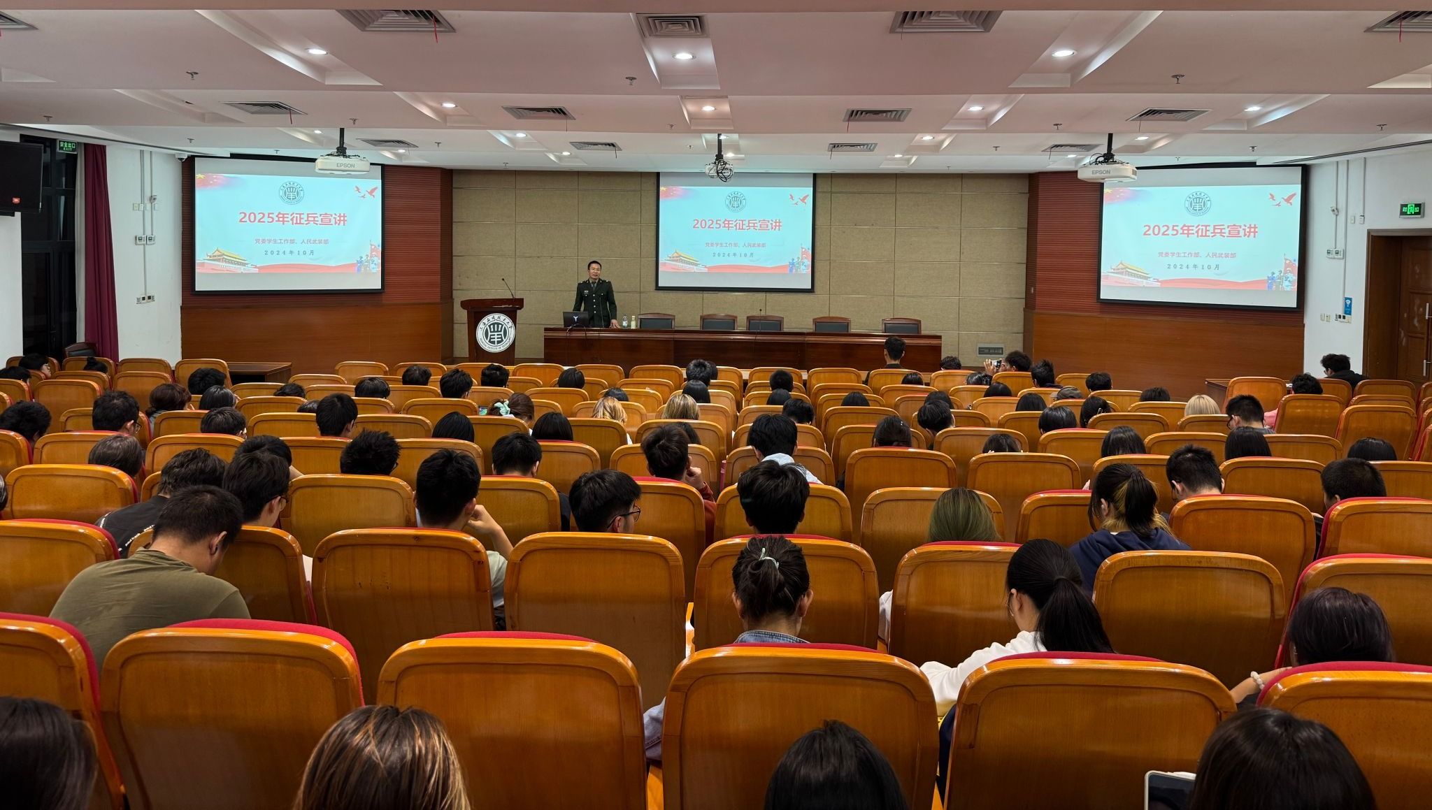 张正东从中国近代史出发,结合时事热点,阐述了国家安全与发展离不开强大的国防建设,激发适龄青年的爱国热情和参军报国的决心。他对征兵政策进行了详细解读,讲解了大学生参军入伍的流程,以及参军入伍后可以享受的优待政策,尤其对体检环节做出重点讲解,通过多个真实案例提醒学生注意体检过程中易发生的问题,以及调理身体时应当注重的细节。