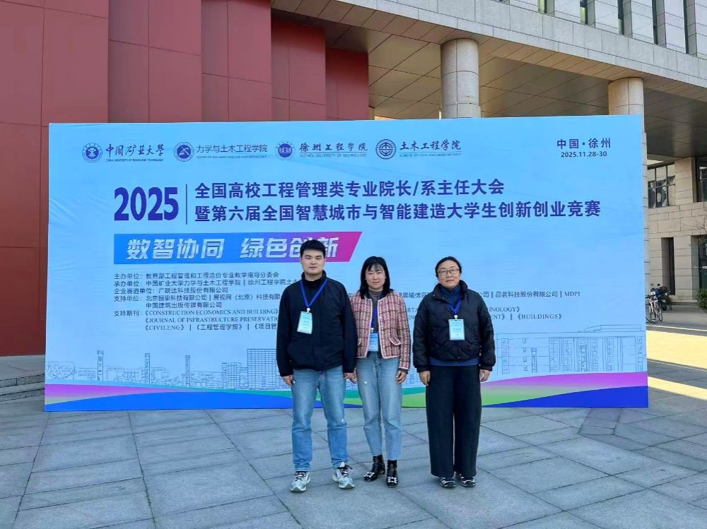 2025年11月28日-30日,由教育部工程管理和工程造价专业教学指导分委会主办,中国矿业大学力学与土木工程学院、徐州工程学院土木工程学院承办,福建晨曦信息科技集团股份有限公司等支持的“2025年全国高校工程管理类专业院长/系主任大会暨第六届全国智慧城市与智能建造大学生创新创业竞赛”于江苏省徐州市中国矿业大学圆满举办。工程管理专业系主任王婷,骨干教师柯翔西、何晖参加会议。