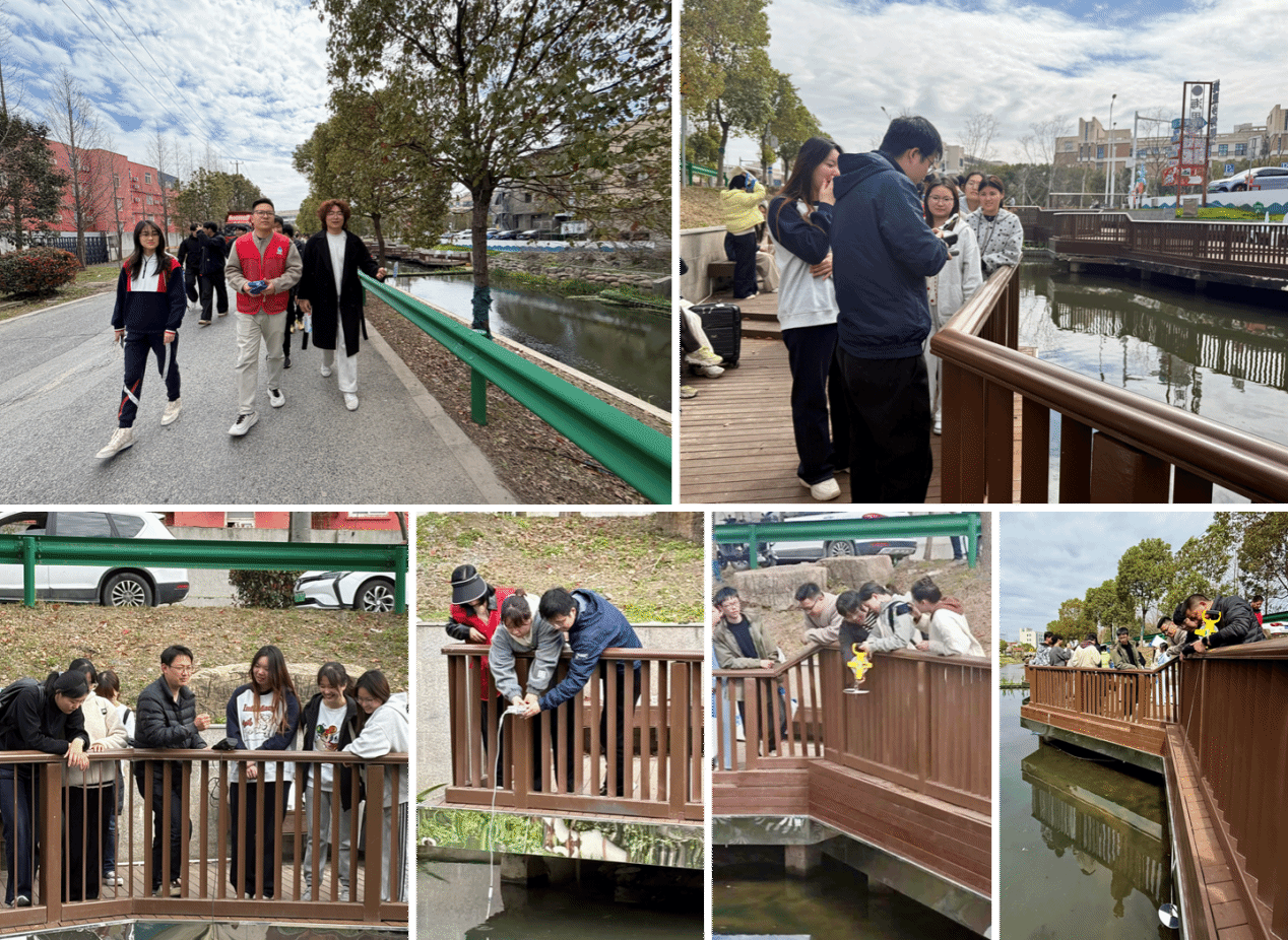 随后,全体人员一同前往彭公塘开展实地践学。学部副主任刘静怡也来到现场,近距离观摩指导。在巡河环节,同学们分组跟随水管中心的老师们沿河岸开展巡河排查,体验河湖管护工作;在水质检测环节,同学们在水文站老师们的指导下,完成水样采集及pH、溶解氧、透明度等指标的现场快速检测,将课堂所学转化为实际操作能力。