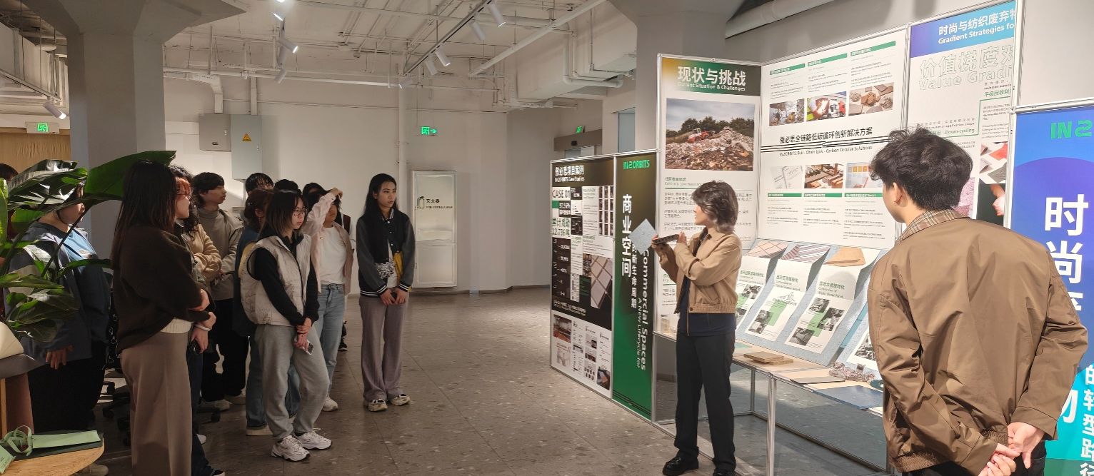 当天,傲必思集团创新负责人连雅婷女士从“城市级循环经济样本、品牌可持续叙事、再生材料创新应用”等角度,重点介绍了中心的代表性项目,包括循环材料建筑系统、体育赛事废弃物回收再利用、品牌可持续展陈实践等。通过丰富的图文展示和材料样品,同学们直观感受了从材料研发、空间设计到社会影响之间的紧密联系,认识到设计决策背后所承担的环境责任与社会价值。