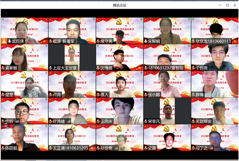 5月30日,城建学院通过腾讯会议召开2022届毕业生党员教育大会,学院党委书记朱柳娟出席会议并上党课。学院4名学生党支部书记、42名本科毕业生党员和21名研究生毕业党员参加了会议。会议由学院党委副书记、副院长张小懿主持。