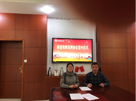汇报会后,还进行了新进教师首聘协议签约仪式和新进教师带教教师受聘仪式。