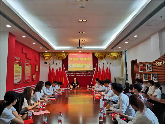 城建学院党委书记朱柳娟作《学党史强信念,奋斗启航新征程》主题党课,党课中,朱柳娟用“身边人身边事”讲述了学院很多优秀共产党员的先进事迹,勉励毕业生党员能够以更加昂扬的精神状态和奋斗姿态, 立足本职,爱岗敬业,切实发挥共产党员先锋模范作用,在新的人生阶段书写共产党人的担当。