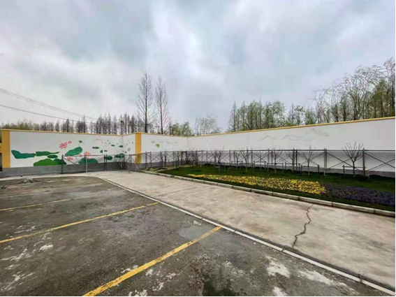 “江碧鸟逾白,山青花欲燃”用画笔为庭院增添一份色彩,用满园春意为人们带来一份惬意。阳春三月,上海应用技术大学城建学院师生为上海浦东新区兴盛路基材料有限公司制作的庭院壁画“烟雨江南”,终于顺利竣工,从美育的根本责任感出发,探索服务基层的决心。