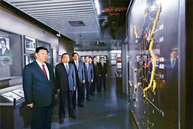 2017年10月31日,中共中央总书记、国家主席、中央军委主席习近平带领中共中央政治局常委李克强、栗战书、汪洋、王沪宁、赵乐际、韩正,瞻仰上海中共一大会址和浙江嘉兴南湖红船。这是31日上午,习近平等在上海中共一大会址纪念馆参观。 新华社记者 兰红光/摄