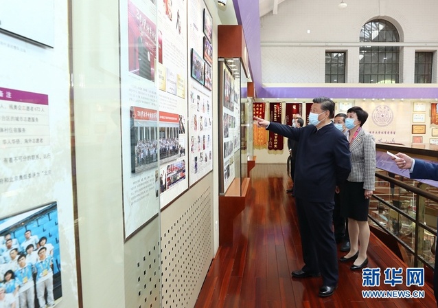 清华大学主楼二层,展示了学校近年来重点教学科研成果。习近平听取了关于增强自主创新能力、助力世界主要科学中心和创新高地建设、提高人文社会学科教育研究水平等情况介绍,对清华大学取得的成绩给予充分肯定。习近平指出,要坚持中国特色社会主义教育发展道路,充分发挥科研优势,增强学科设置的针对性,加强基础研究,加大自主创新力度,并从我国改革发展实践中提出新观点、构建新理论,努力构建中国特色、中国风格、中国气派的学科体系、学术体系、话语体系。