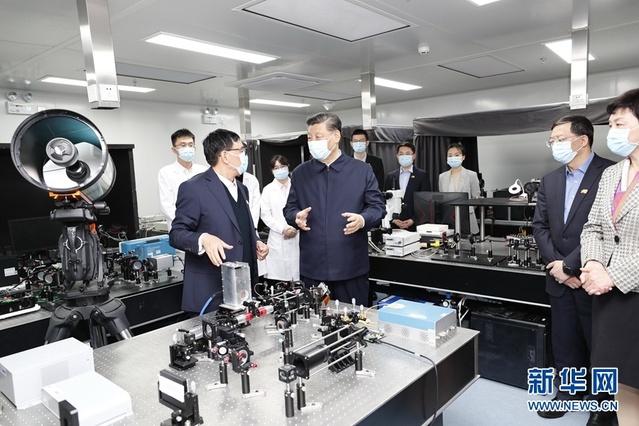 ▲4月19日,在清华大学建校110周年校庆日即将来临之际,中共中央总书记、国家主席、中央军委主席习近平来到清华大学考察。这是习近平在清华大学成像与智能技术实验室同师生们亲切交谈。新华社记者 黄敬文 摄