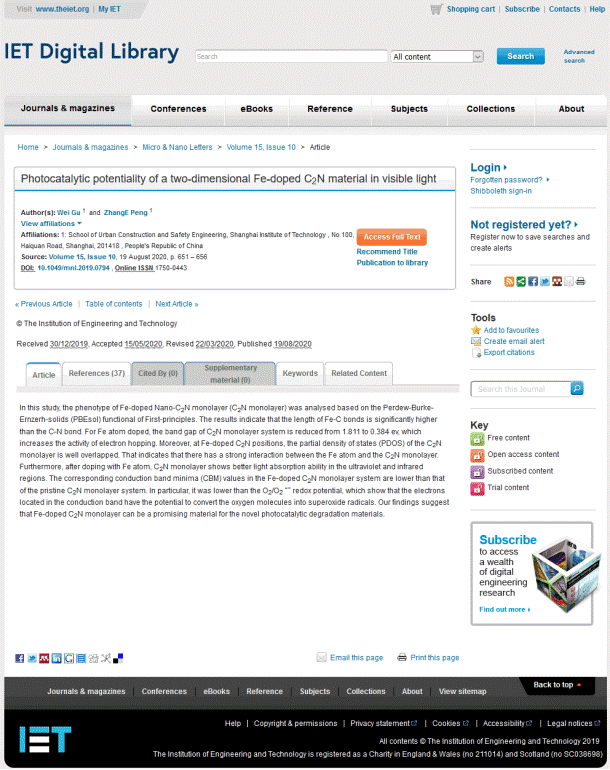 这次发表论文的经历让自己的内心渐渐变得更加强大,也越发体会到科研工作的艰辛。有了第一篇论文的投稿经历,第二篇论文从构思到实验计算,从写作到投稿整个周期就比较顺手了,在经过两个月的等待后,文章顺利被录用发表。